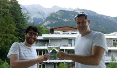 Pictured: Dr. Christoph Birkl (left) celebrates with supervisor and Principal Investigator Dr. Alex Rauscher (right)...