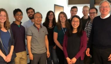 Pictured: the MacVicar lab celebrates Dr. Rebcca Ko (front row, second from right) as...