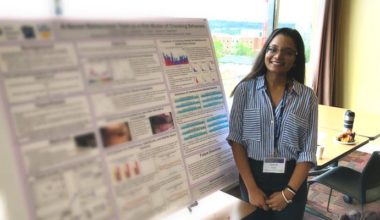 Pictured: Sukriti Gupta, an undergraduate researcher in Dr. Jeremy Seamans’ lab, with her poster...